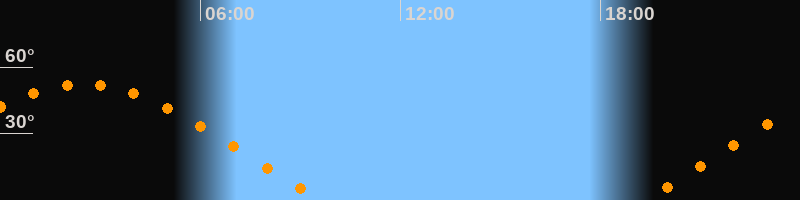 | Aufgang | 19:16 Uhr im Osten (αAz = 68,2°) |