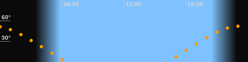 | Aufgang | 16:05 Uhr im Osten (αAz = 68,2°) |