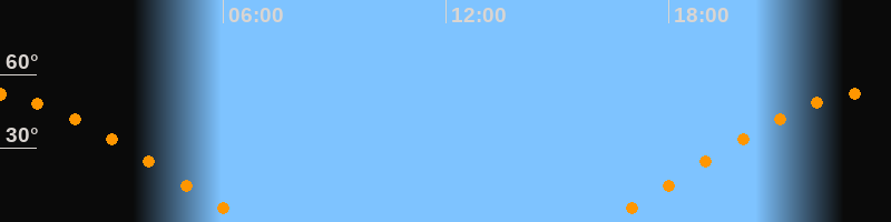 | Aufgang | 16:18 Uhr im Osten (αAz = 68,2°) |