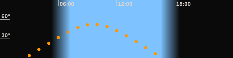 | Aufgang | 02:29 Uhr im Osten (αAz = 68,2°) |