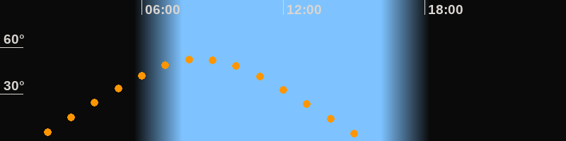 | Höchster Stand (Kulmination) | 08:27 Uhr (h = 52,4°) |