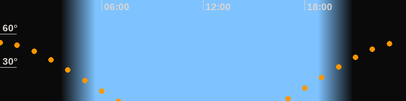| Aufgang | 16:40 Uhr im Osten (αAz = 68,2°) |