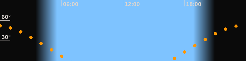 | Aufgang | 16:29 Uhr im Osten (αAz = 68,2°) |