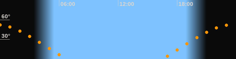 | Aufgang | 16:25 Uhr im Osten (αAz = 68,2°) |