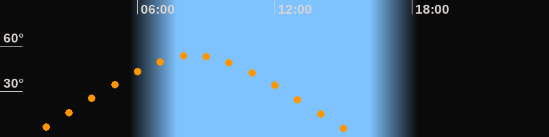 | Höchster Stand (Kulmination) | 08:27 Uhr (h = 53,8°) |