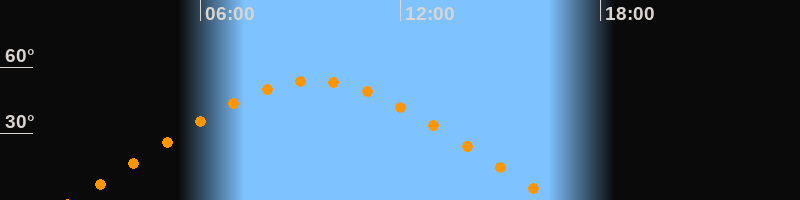 Höchster Stand (Kulmination)09:23 Uhr (h = 53,8°)