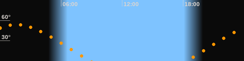 | Aufgang | 18:17 Uhr im Nordosten (αAz = 66°) |