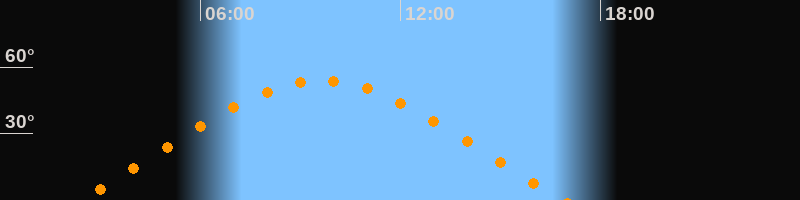 Höchster Stand (Kulmination)09:38 Uhr (h = 53,8°)