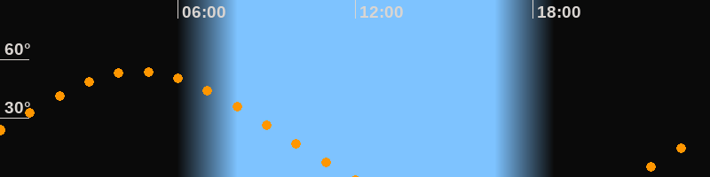Höchster Stand (Kulmination)04:39 Uhr (h = 53,8°)