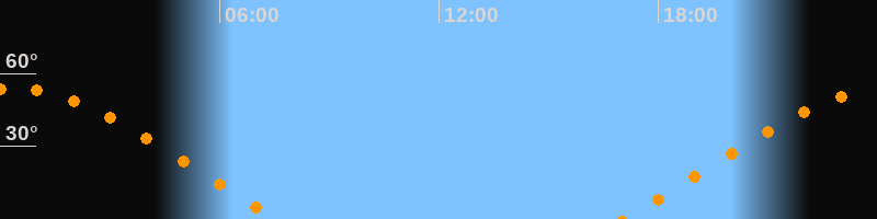 | Untergang | 07:38 Uhr im Nordwesten (αAz = 294°) |