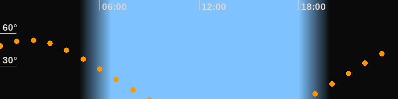| Untergang | 09:00 Uhr im Nordwesten (αAz = 294°) |