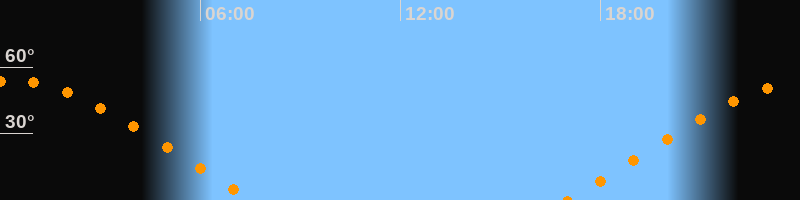 | Aufgang | 17:00 Uhr im Nordosten (αAz = 66°) |