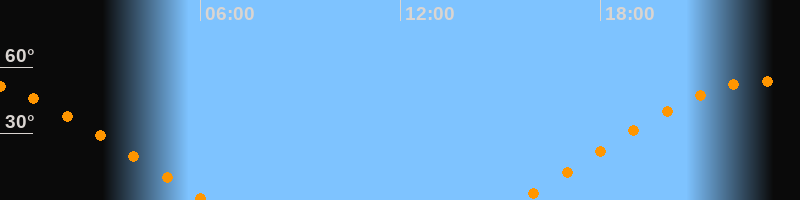 | Aufgang | 15:34 Uhr im Nordosten (αAz = 66°) |