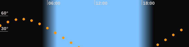 | Aufgang | 19:24 Uhr im Nordosten (αAz = 66°) |