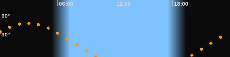 | Aufgang | 19:33 Uhr im Nordosten (αAz = 66°) |