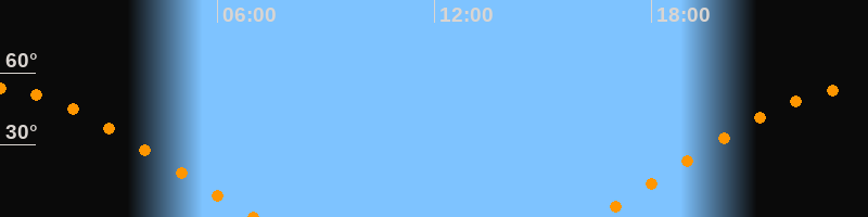 | Untergang | 07:02 Uhr im Nordwesten (αAz = 294°) |