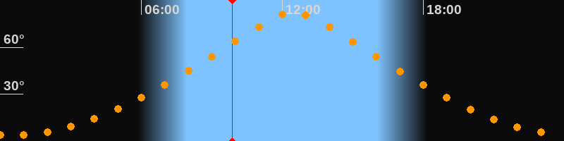 | Höchster Stand (Kulmination) | 12:29 Uhr (h = 82,4°) |