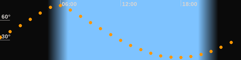 | Höchster Stand (Kulmination) | 05:44 Uhr (h = 82,4°) |