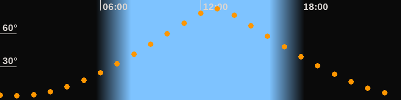 | Höchster Stand (Kulmination) | 12:53 Uhr (h = 82,4°) |