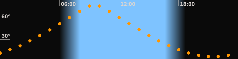 | Höchster Stand (Kulmination) | 09:30 Uhr (h = 82,4°) |