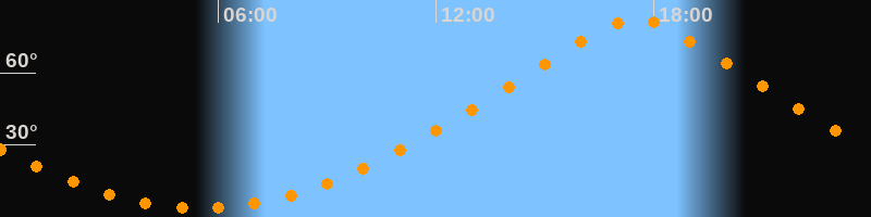 | Höchster Stand (Kulmination) | 17:31 Uhr (h = 82,4°) |