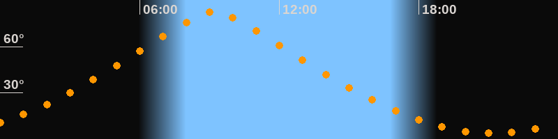 | Höchster Stand (Kulmination) | 09:11 Uhr (h = 82,4°) |