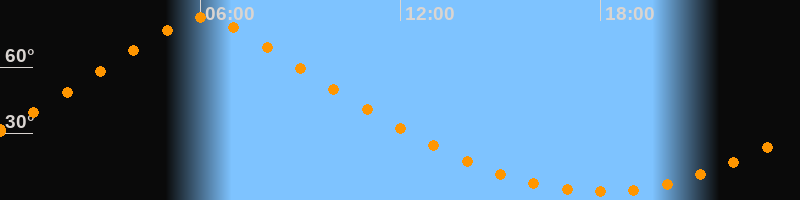 | Höchster Stand (Kulmination) | 06:04 Uhr (h = 82,4°) |