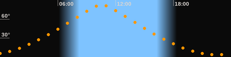 | Höchster Stand (Kulmination) | 10:34 Uhr (h = 82,4°) |
