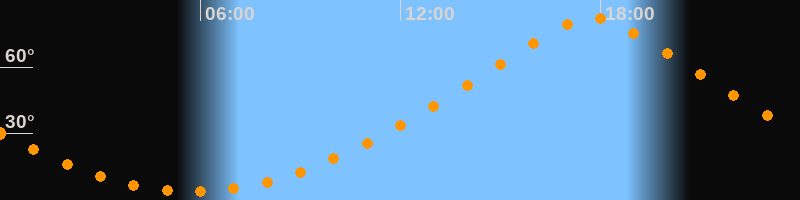 | Höchster Stand (Kulmination) | 17:45 Uhr (h = 82,4°) |