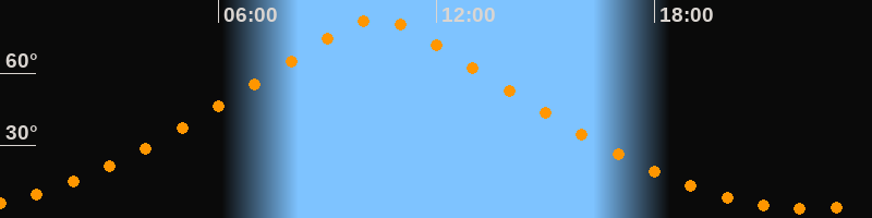 Höchster Stand (Kulmination)10:21 Uhr (h = 82,4°)