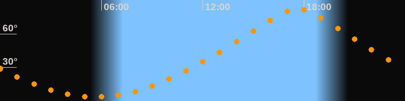 | Höchster Stand (Kulmination) | 17:37 Uhr (h = 82,4°) |