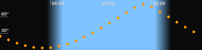 | Höchster Stand (Kulmination) | 17:06 Uhr (h = 82,4°) |