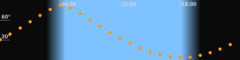 | Höchster Stand (Kulmination) | 06:08 Uhr (h = 82,4°) |