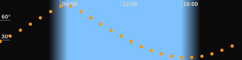 | Höchster Stand (Kulmination) | 06:29 Uhr (h = 82,4°) |