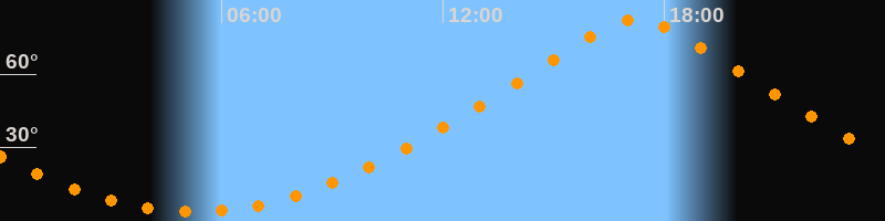 | Höchster Stand (Kulmination) | 17:15 Uhr (h = 82,4°) |