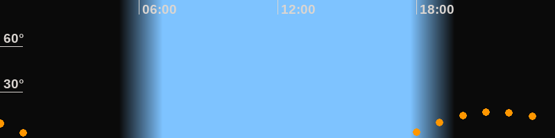 Untergang01:34 Uhr im Südwesten (αAz = 234,3°)