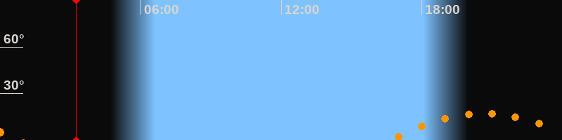 Untergang00:45 Uhr im Südwesten (αAz = 234,3°)