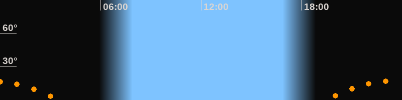 Aufgang19:21 Uhr im Südosten (αAz = 125,7°)