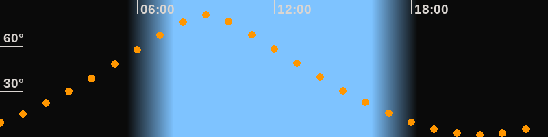 | Höchster Stand (Kulmination) | 09:01 Uhr (h = 80,4°) |