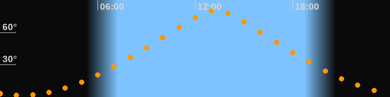 | Höchster Stand (Kulmination) | 13:15 Uhr (h = 80,4°) |