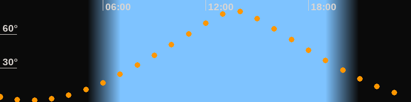 | Höchster Stand (Kulmination) | 13:44 Uhr (h = 80,4°) |