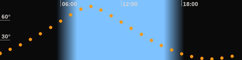 | Höchster Stand (Kulmination) | 08:55 Uhr (h = 80,4°) |