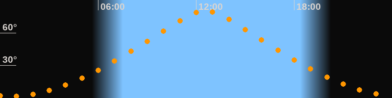 | Höchster Stand (Kulmination) | 12:34 Uhr (h = 80,4°) |