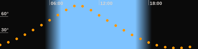 | Höchster Stand (Kulmination) | 09:28 Uhr (h = 80,4°) |