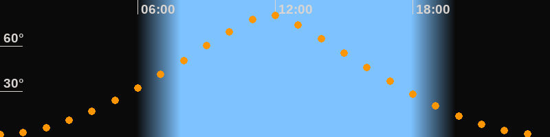 | Höchster Stand (Kulmination) | 11:45 Uhr (h = 80,4°) |