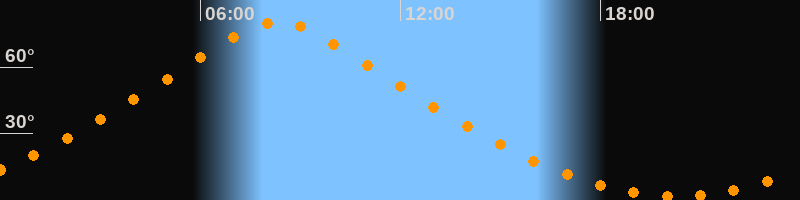 | Höchster Stand (Kulmination) | 08:19 Uhr (h = 80,4°) |