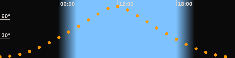 | Höchster Stand (Kulmination) | 11:50 Uhr (h = 80,4°) |