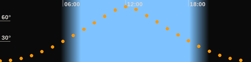 | Höchster Stand (Kulmination) | 12:03 Uhr (h = 80,4°) |