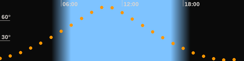 | Höchster Stand (Kulmination) | 10:28 Uhr (h = 80,4°) |