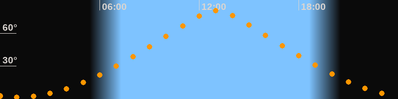 | Höchster Stand (Kulmination) | 13:03 Uhr (h = 80,4°) |